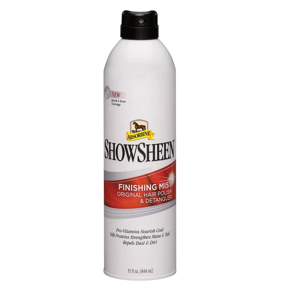 Absorbine Showsheen Finishing Mist original hair polish and detangler with added Pro-Vitamins and Silk Proteins, now comes in an easy to use, continuous spray bottle that gives quick and even coverage.