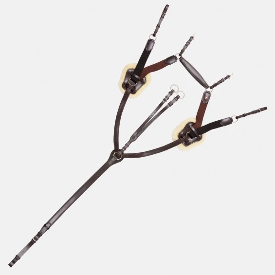 The Albion 5 Point Breastplate is made from the finest leathers, this breastplate has been designed using strong, yet super soft leather and elastic for ultimate comfort. It is attached to your horse’s saddle at 5 points, i.e. the girth (between the front legs), to the two top ‘D’s’ of the saddle and to the girth straps on each side, under the rider’s leg. This superb brestplate is a rider favourite and also offers the excellent feature of easily removable wool pads so that they can be washed.