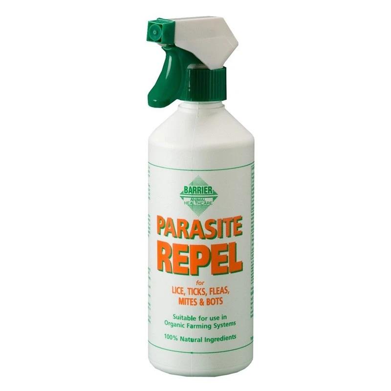 Barrier Parasite Repel is a 100% natural formulation. Effectively repels all types of sucking and biting lice, mite (including the Harvest mite), midge, tick, mosquito and black fly for up to 24 hours. Suitable for young, recovering and elderly animals including horses, ponies, cattle, dogs, cats and other small pets. Spray directly onto ticks and bot eggs to loosen naturally then simply wipe away. Fully HSE approved – HSE 8163.