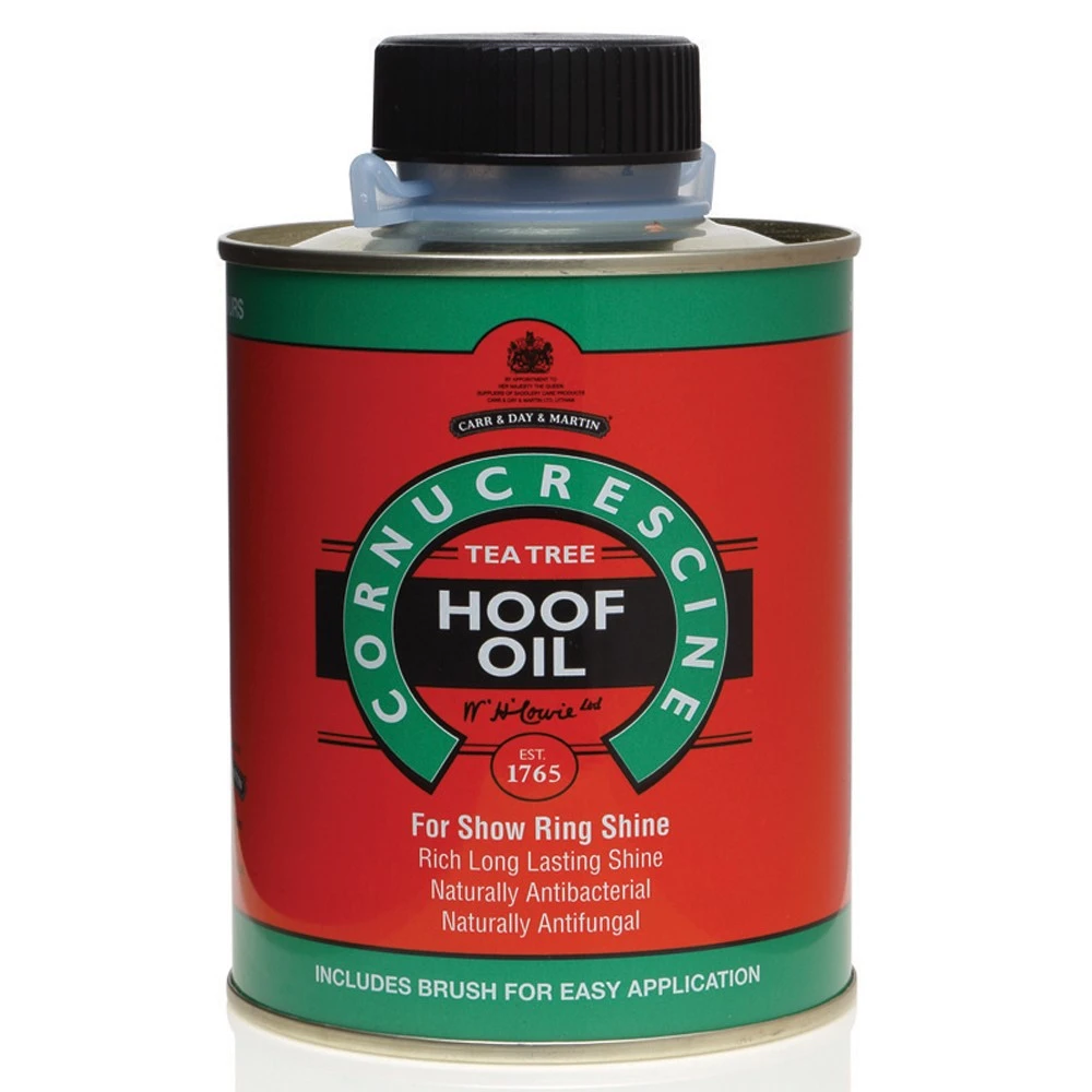 Carr & Day & Martin Cornucrescine Tea Tree Hoof Oil is a modern alternative to traditional style oils. Maintains and protects the hood, leaving a lasting show ring shine. This rich, translucent oil, is suitable for all hoof colours. Contains tea tree oil for its antibacterial and antifungal properties.