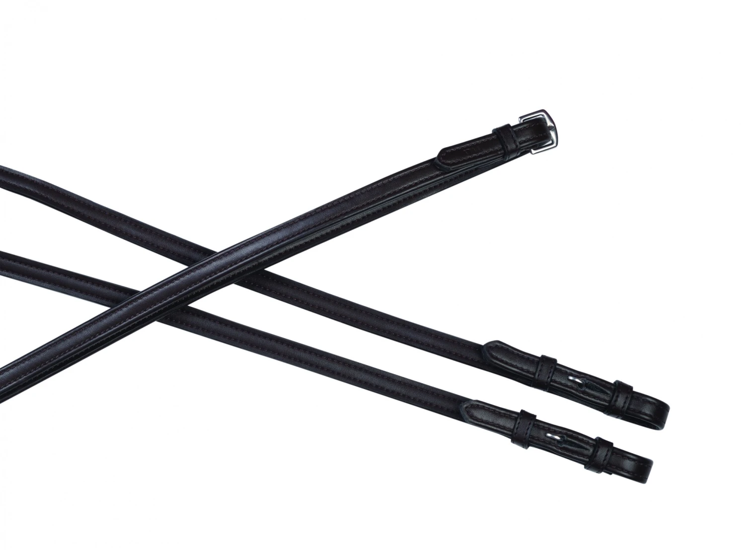 The Collegiate Syntovia+ Plain Flat Reins are quality synthetic leather reins with hook and stud billets for durability and security.