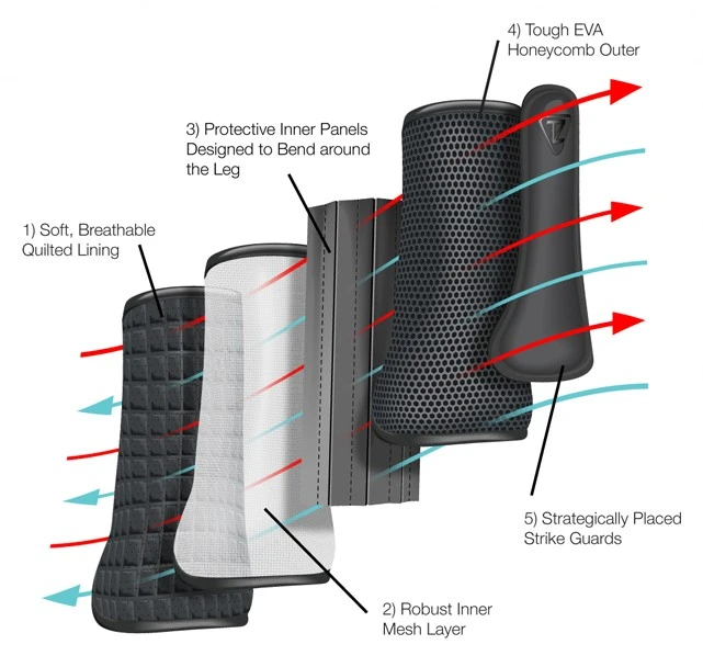 - Breathable horse boots, allows heat to escape with unique multilayer mesh design. Keeping legs cool is so important for helping to prevent injury to tendons and ligaments.