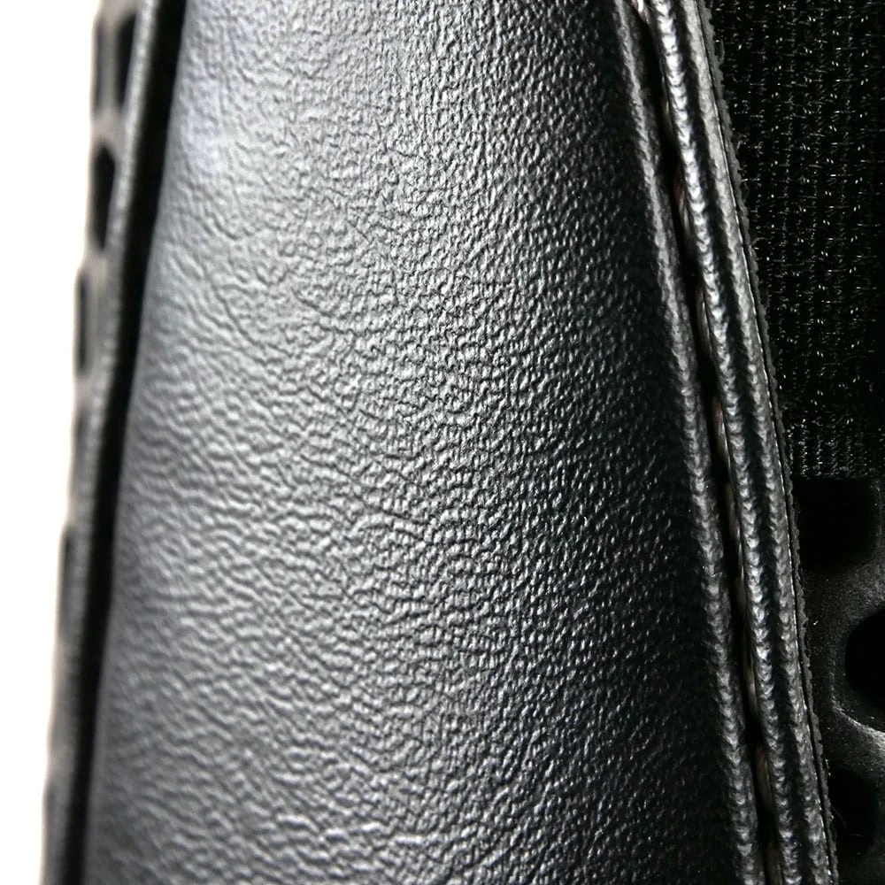 Finally, layer five includes strategically placed vinyl strike guards. These are placed down the vulnerable tendon area for maximum protection.