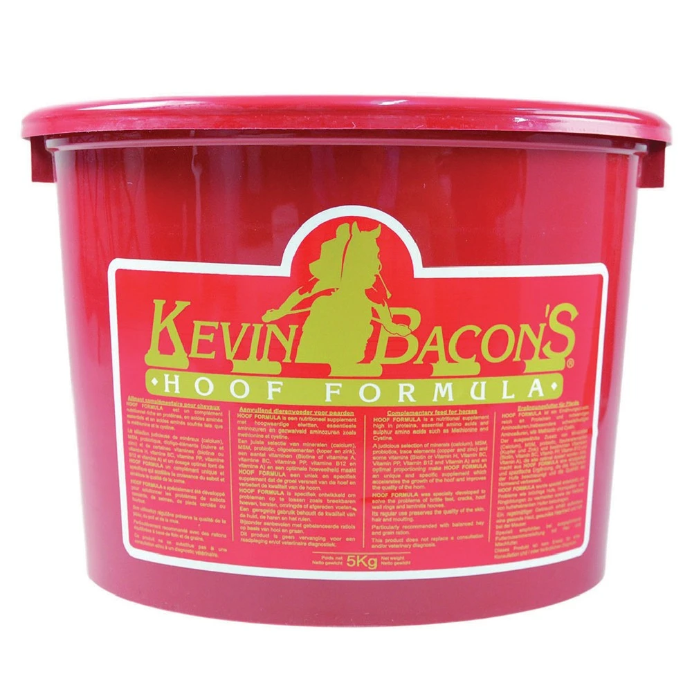 Kevin Bacon’s Hoof Formula is a highly digestible, nutritional supplement scientifically formulated to assist the growth and quality of the horses’ hoof. It has been formulated and tested by the Dept. of Veterinary Medicine at the University of Liège . It is one of the most concentrated supplements on the market with high levels of Biotin (500mg/kg) and Vitamin A (975,000 IU/kg). This sulphur enriched formula contains 37% crude proteins that are particularly rich in essential amino acids, with high levels of methionine (42gm/kg) and cystine (42gm/kg). The Hoof Formula is suitable for horses at all levels of training, including equine athletes on a high grain diet. Kevin Bacon’s Hoof Formula contains high levels of calcium (117gm/kg), optimum levels of magnesium, potassium and phosphorous and trace elements copper, zinc, cobalt and iodine Kevin Bacons Hoof Formula is the ultimate supplement for quality horn growth in addition to helping to promote a healthy coat and skin Feeding Instructions: Horses 1 measure (160gm) per day Ponies 1/2 measure (80gm) per day Foals 1/4 measure (40gm) per day Maintenance: One half of the daily measure.