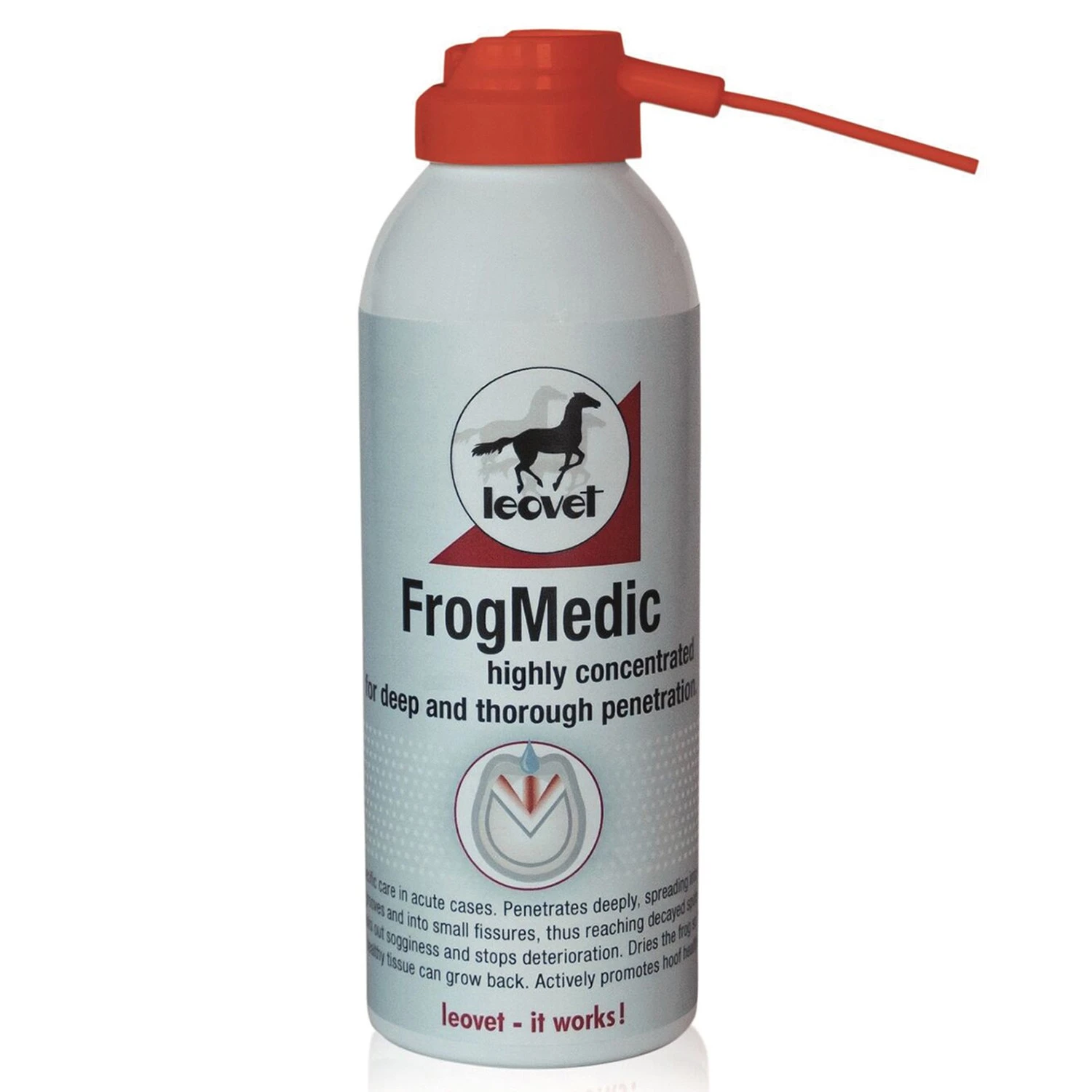 Highly concentrated thrush care for deep and thorough penetration. Specifically designed for use in acute cases, it penetrates deeply, spreading into the grooves and small fissures, thus reaching decayed spots. It blocks out sogginess, stops deterioration and dries the frog so that healthy tissue can grow back.