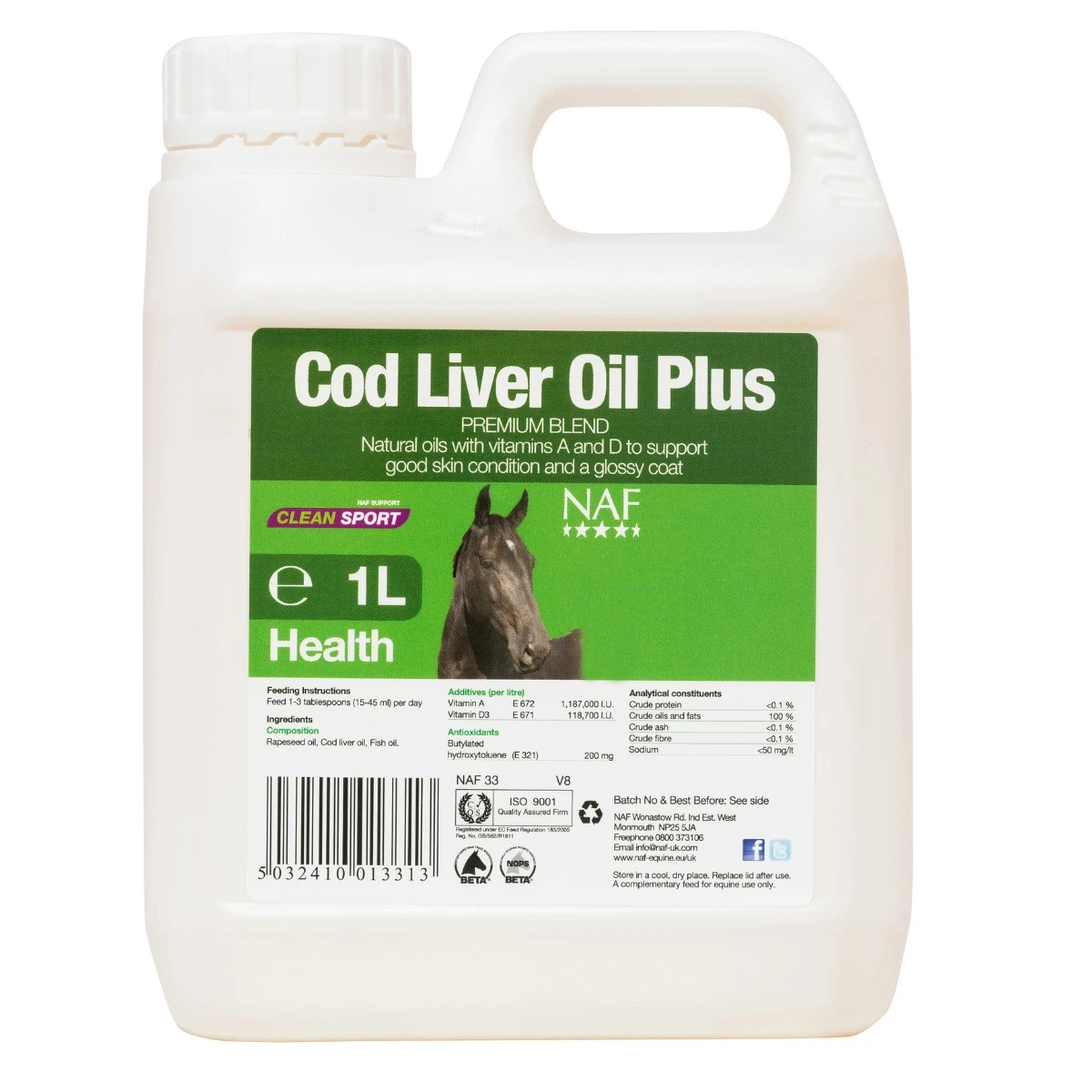 NAF Cod Liver Oil Plus is a rich natural source of vitamins A and D and Omega 3 Fatty acids, along with linoleic acid which is renowned for its benefits to suppleness and coat condition.