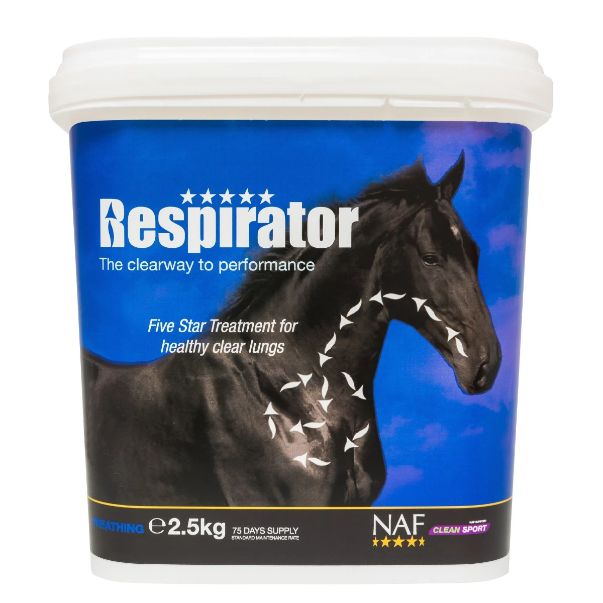 NAF Five Star Respirator provides valuable nutritional support to the respiratory mucosal immune system and the delicate capillary blood vessels that surround the lungs. Research shows that by supplementing the diet with naturally sourced anti-oxidants, the horse’s lungs can be given valuable support. Respirator contains a concentrated solution of natural anti-oxidants, alongside herbs such as ginger, rosehip and blueberries, chosen for their targeted support of healthy lung function. Respirator is also recommended where close contact with other horses showing respiratory stress may be cause for concern.