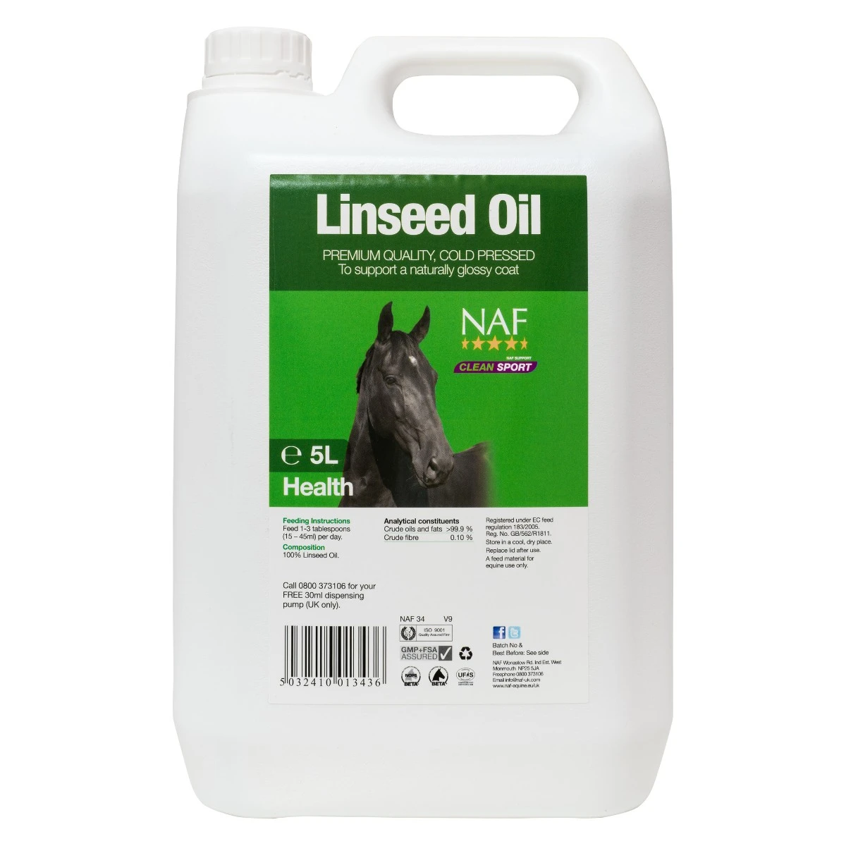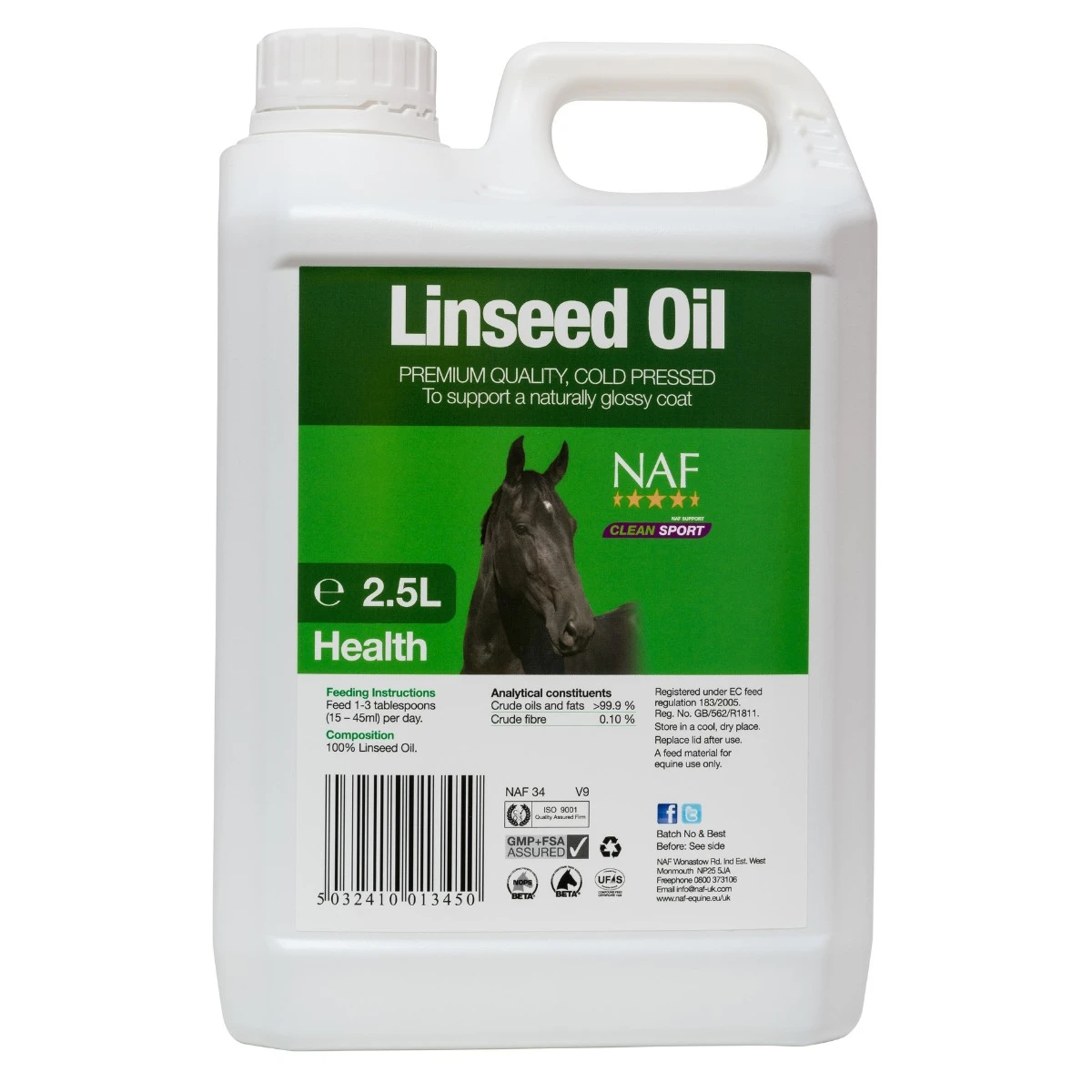 NAF Linseed Oil supports general health and maintains a rich, natural shine. Rich in omega 3 fatty acids, (particularly linolenic acid and alpha-linoleic acid) supplementing with Linseed Oil will be reflected in a fabulous shiny coat. NAF only use pure cold pressed Linseed Oil, obtained without the potentially harmful solvent extraction process. NAF Linseed Oil is safe, good quality and suitable for all horses and ponies.