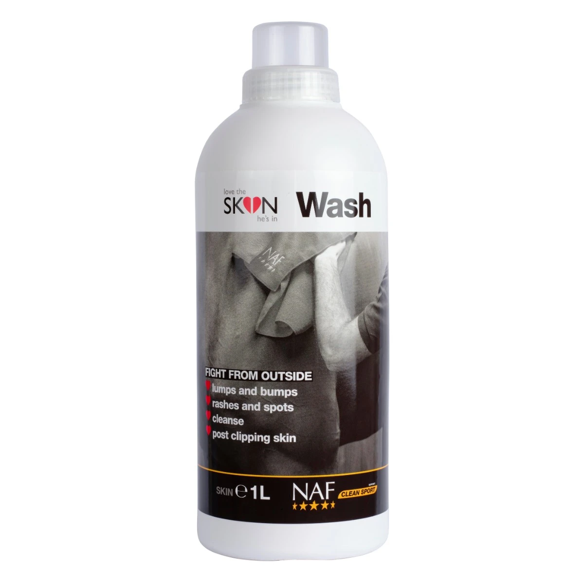 This totally natural skin wash offers the premium skin care your horse’s skin deserves. NAF Love the SKIN he’s in Skin Wash is a gentle unique blend of herbal ingredients, including Aloe Vera, designed to help support damaged or challenged skin affected by lumps, bumps, rashes or mild irritations. This 3 in 1 product provides optimum skin care whichever way you choose to use it on your horse. Either as a hot towel wash following clipping or for a deep clean, as a cold wash for a refreshing cleanse to lift sweat, grease and dust from the coat, or applied directly to the skin in a concentrated form to address specific areas requiring attention.