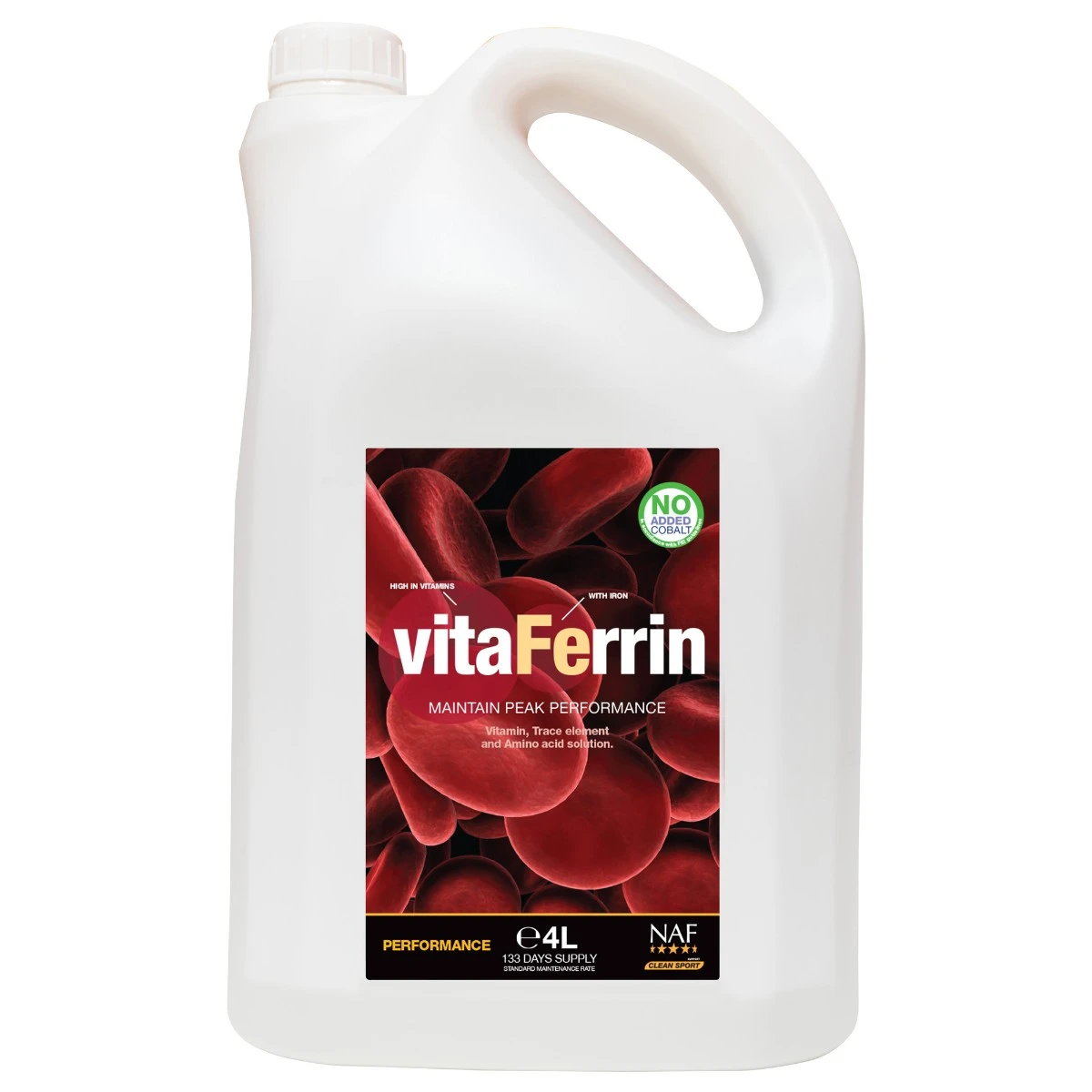 NAF’s veterinary and nutritional specialists have developed NAF vitaFerrin as an appropriate and effective nutritional solution to help optimise horses’ performance levels. vitaFerrin is iron rich and fortified with vitamins and minerals to maximise training and performance potential and has the added immune system support of yucca and echinacea. Feed vitaFerrin to maintain peak performance.