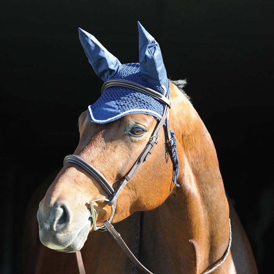 Crocheted ear cover that protects from insects. Can be used whilst riding to help dim sound in a loud environment.