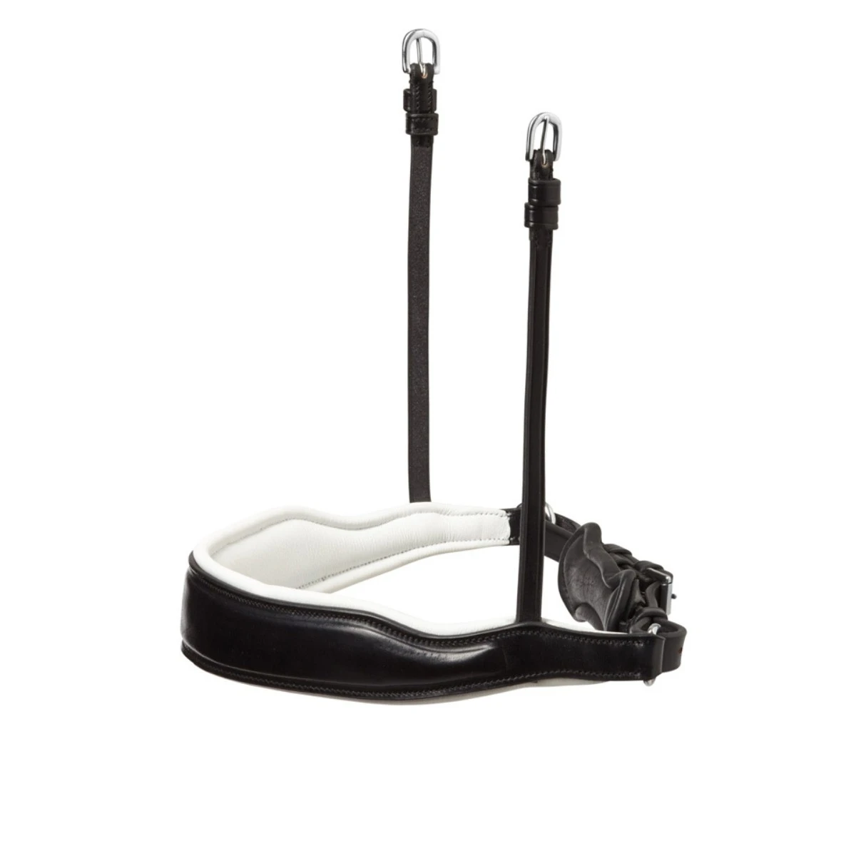 The wide cut Modena Select noseband is provided with cut-outs for the cheekbone and thus offers high wearing comfort for the horse. Due to the special design it can be used very well as a noseband for a double bridle.