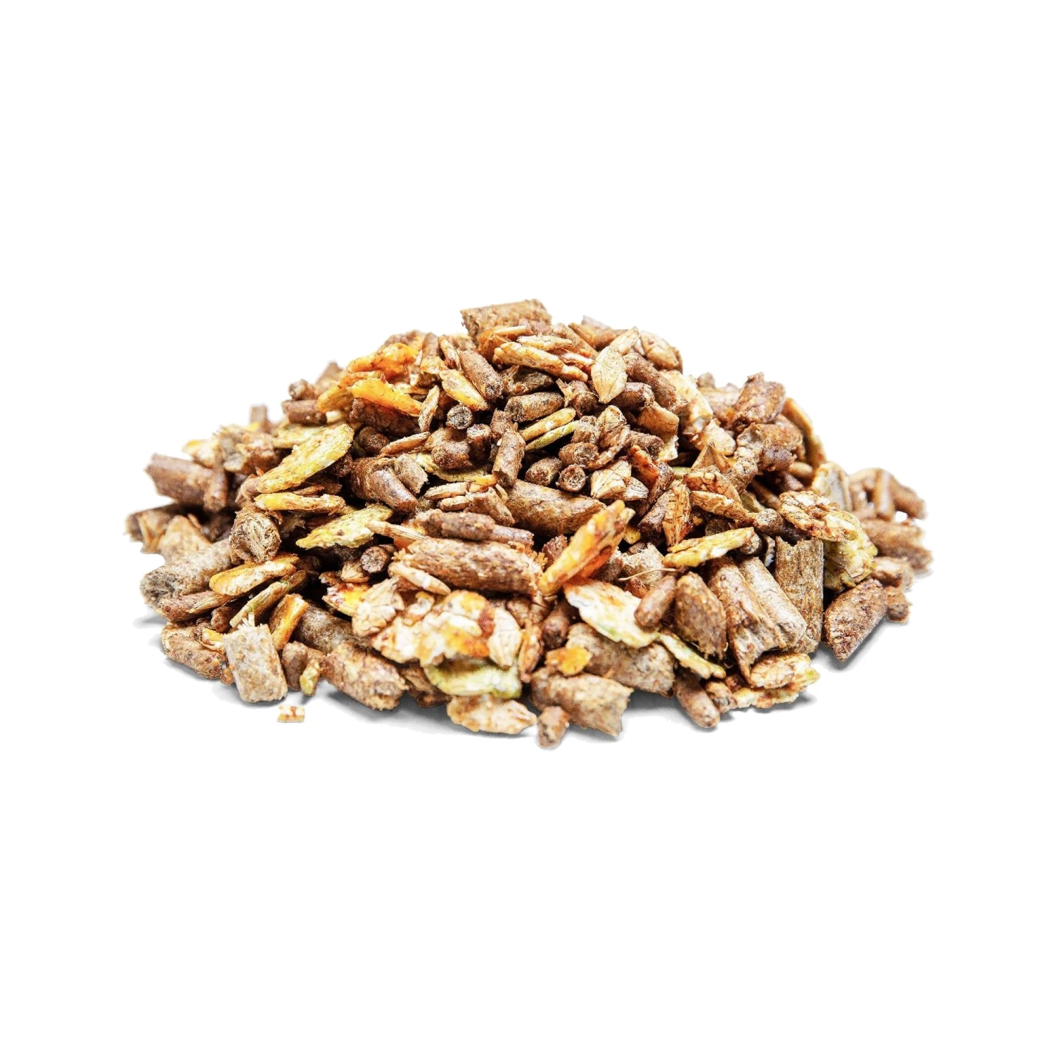 - Includes wholesome cereals, such as steam flaked barley, maize and peas alongside cereal fibres and rapeseed oil.