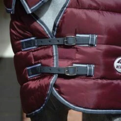 A great every day stable rug: The WeatherBeeta ComFiTec 210D Channel Quilt Combo Neck Heavy stable rug features a 210 denier channel quilted outer with a 210T polyester lining, extra warm 400g of polyfill with channel quilt design to keep the polyfill in place for optimum coverage and touch tape loop to fold back combo neck for extra versatility to become a standard neck style. Twin adjustable front buckle closure with touch tape, twin low cross surcingles and tail cord.