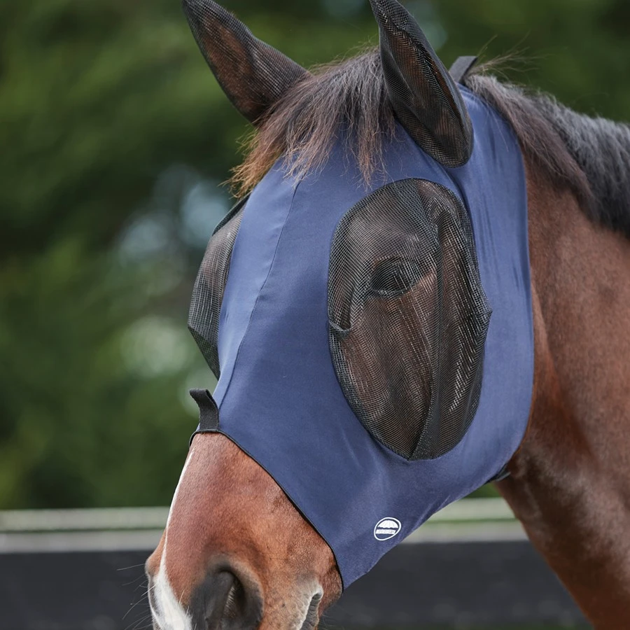 - The stretch fabric offers a secure fit around the horses head preventing insects from entering the mask