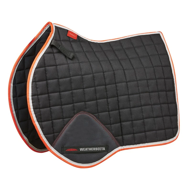 The WeatherBeeta Therapy-Tec All Purpose Saddle Pad is a polyester quilted saddle pad with 450g polyfill and ceramic lining. The cut back wither design works to reduce pressure over the wither and the breathable mesh spine allows for airflow to the horse’s back. Great to use during exercise for cold backed horses. The PVC covered girth patch offers durability and the touch tape girth loops allow for a versatile fit. Easy attachment to the D-rings is made simple with short touch tape loops for a secure fit and the high wither design allows for extra space to assure maximum comfort for the horse. Machine washable at 30 degrees, DO NOT tumble dry. Matching range available.