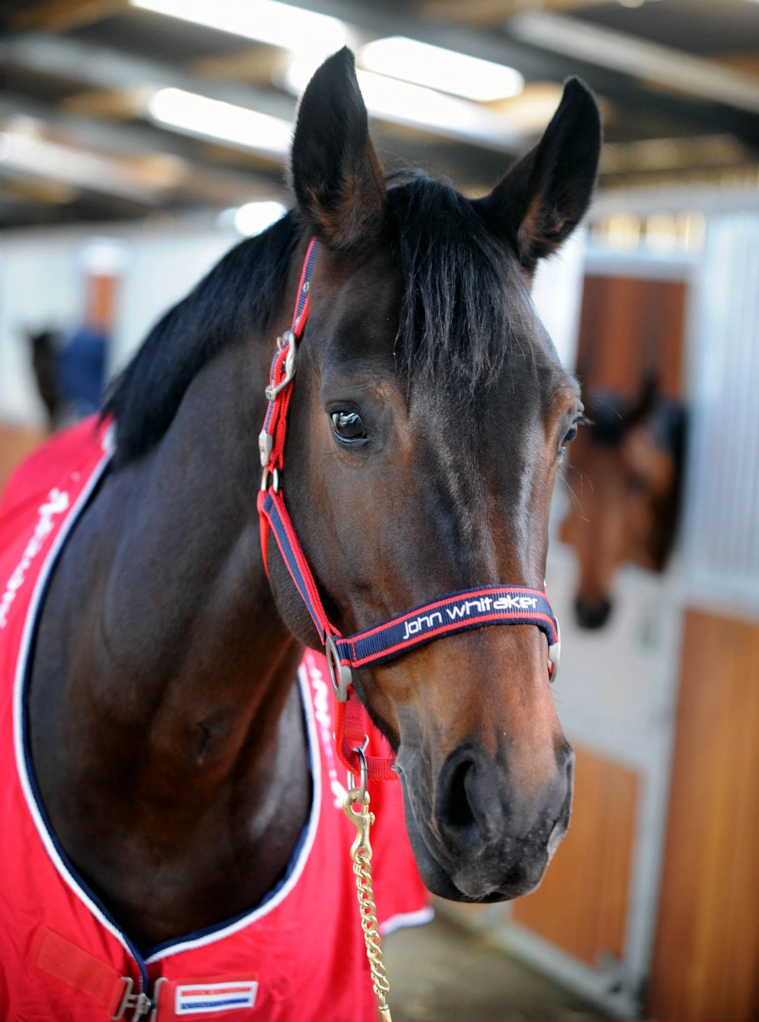 The Whitaker Padded Fleece Headcollar is a great addition to any tack room, featuring John Whitaker branding embroidery across the nose.